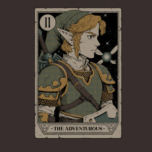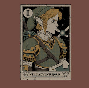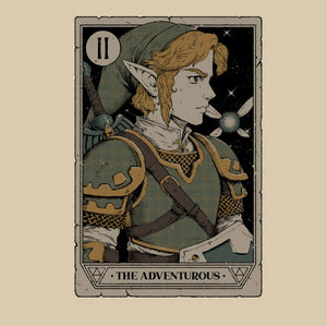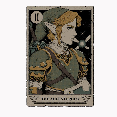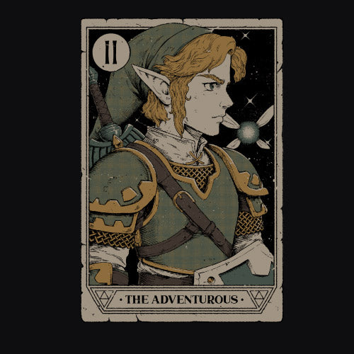 La carte "The Adventurous" met à l’honneur Link, le héros légendaire d’Hyrule, dans une interprétation inspirée du tarot Necronomicon. Numérotée II, cette carte représente le courage, l’exploration et la quête de vérité. L’illustration reprend les codes mystiques du tarot, mêlant symboles occultes, runes anciennes. Le style artistique, entre ésotérisme et fantasy, confère à cette carte une aura d’aventure et de destin. Troisième pièce de la collection Tarot Necronomicon, “The Adventurous” rend hommage à l’esprit des explorateurs et à ceux qui osent défier le sort.