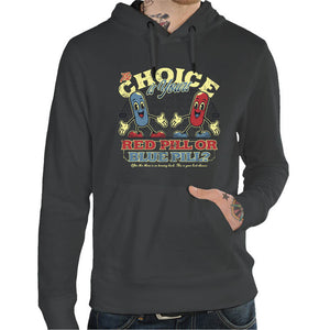 Avouez que vous n’aviez jamais vu un tee-shirt Matrix aussi cartoon ! Le choix fatidique de la pilule, imposé par Morpheus à Neo dans le film éponyme, est très symbolique. Vaut-il mieux se réveiller et apprendre une terrible vérité, ou bien rester dans une confortable ignorance pour que rien ne change ? Si le choix de Thomas Anderson est resté célèbre, vous êtes-vous déjà demandé quelle pilule vous choisiriez ? Les cinéphiles et amateurs de philosophie apprécieront sans aucun doute ce t-shirt très décalé, dont le style cartoon et vintage vous vaudra un joli succès lorsque vous le porterez !