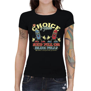Avouez que vous n’aviez jamais vu un tee-shirt Matrix aussi cartoon ! Le choix fatidique de la pilule, imposé par Morpheus à Neo dans le film éponyme, est très symbolique. Vaut-il mieux se réveiller et apprendre une terrible vérité, ou bien rester dans une confortable ignorance pour que rien ne change ? Si le choix de Thomas Anderson est resté célèbre, vous êtes-vous déjà demandé quelle pilule vous choisiriez ? Les cinéphiles et amateurs de philosophie apprécieront sans aucun doute ce t-shirt très décalé, dont le style cartoon et vintage vous vaudra un joli succès lorsque vous le porterez !