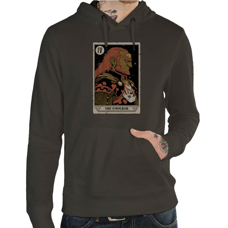 La carte "The Emperor" transpose la majesté et la puissance de l’univers Zelda dans le style sombre et mystique du tarot Necronomicon. Numérotée IV, cette carte symbolise l’autorité, la stabilité et la force intérieure. L’illustration, riche en détails, évoque les légendes d’Hyrule à travers un traitement artistique ésotérique : un mélange d’ombres, de runes anciennes et d’énergie divine. Cette pièce fait partie d’une collection exclusive de cartes de tarot pop culture, mêlant mythes et jeux vidéo emblématiques. Un design unique pour ceux qui règnent sur leur royaume… ou sur leur garde-robe.