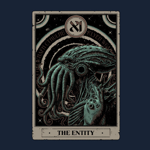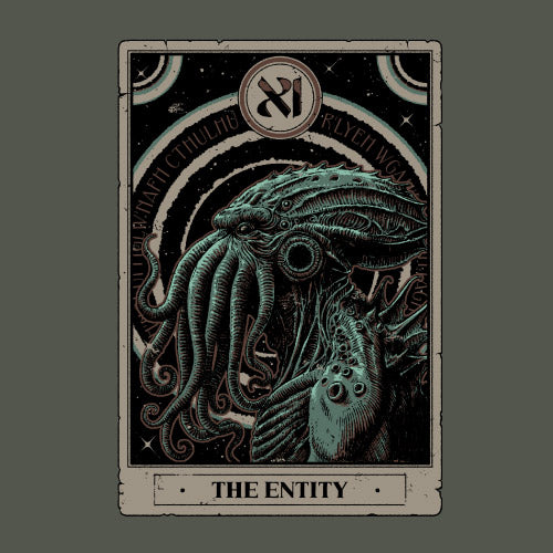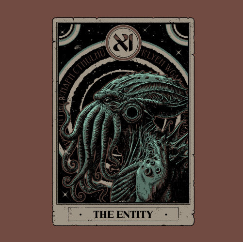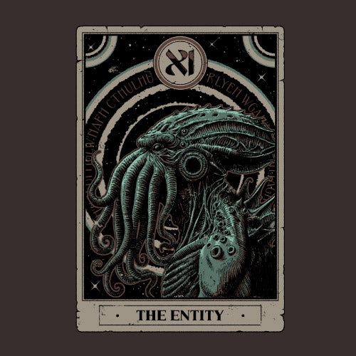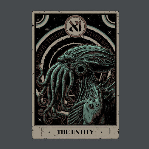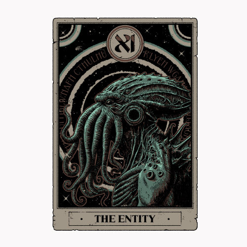 La carte "The Entity" est l’incarnation même du mystère et de la puissance cosmique. Inspirée du tarot Necronomicon, elle représente Cthulhu, l’entité mythique surgissant d’un fond spatial infini. Numérotée XI, cette carte évoque la transcendance, la folie des étoiles et le pouvoir insondable des forces oubliées. L’illustration mêle symboles ésotériques, teintes célestes et détails organiques pour créer une atmosphère hypnotique. Dernière pièce du Tarot Necronomicon, “The Entity” clôture la collection avec majesté, unissant horreur cosmique et art mystique dans une œuvre aussi fascinante qu’inquiétante.