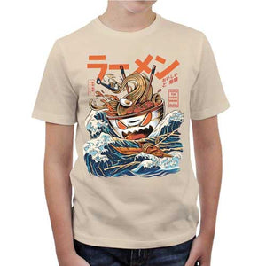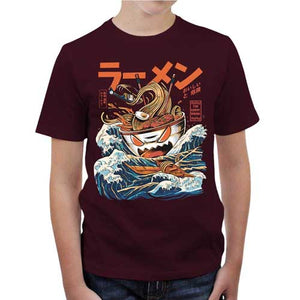 Votre enfant a déjà bien grandi, et vous souhaitez continuer sa formation de jedi geek ? Pas besoin de risquer de le blesser avec un sabre laser, on a beaucoup mieux pour lui: ce T-shirt enfant geek - The Great Ramen !