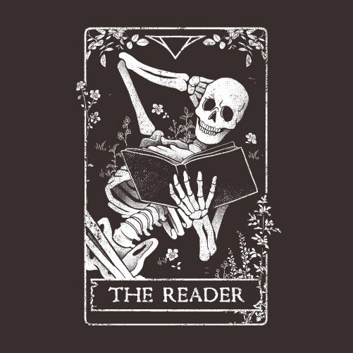 The Reader représente une carte de tarot mystérieuse et minimaliste. Au centre de la carte, un squelette est absorbé par la lecture d’un livre, symbole intemporel de la quête de savoir qui dépasse le temps et la vie elle-même. Ce contraste entre mort et passion de la lecture crée une image à la fois poétique, ironique et profonde. L’illustration s’adresse aux lecteurs et lectrices passionné·es, à celles et ceux pour qui les livres sont une nécessité vitale. Entre esthétique ésotérique et humour subtil, ce visuel célèbre la lecture comme une obsession noble et éternelle.