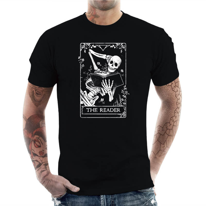 The Reader représente une carte de tarot mystérieuse et minimaliste. Au centre de la carte, un squelette est absorbé par la lecture d’un livre, symbole intemporel de la quête de savoir qui dépasse le temps et la vie elle-même. Ce contraste entre mort et passion de la lecture crée une image à la fois poétique, ironique et profonde. L’illustration s’adresse aux lecteurs et lectrices passionné·es, à celles et ceux pour qui les livres sont une nécessité vitale. Entre esthétique ésotérique et humour subtil, ce visuel célèbre la lecture comme une obsession noble et éternelle.