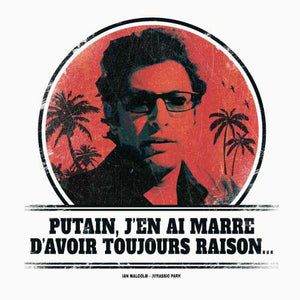 Le génial Ian Malcolm, qui avait prévu avant tout le monde que le projet fou de John Hammond, son fameux Jurrasic Park, allait sévèrement partir en cacahuète, est aussi à l’origine de l’une des répliques les plus cultes du film. On a voulu la représenter sur un tee-shirt bien stylé, qui va vous permettre de montrer de façon humoristique que vous avez souvent, voire toujours raison !