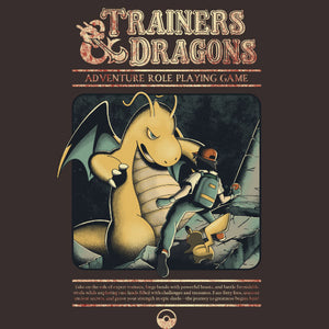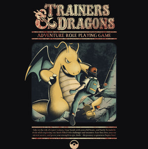 Trainers and Dragons met en scène Sacha et Pikachu lancés dans une quête démesurée : tenter de capturer un gigantesque dragon sauvage. Dans un univers mêlant fantasy et aventure, l’illustration reprend les codes des jeux de rôle avec la mention : “Adventure Role Playing Game”. Le visuel invite à plonger dans une épopée héroïque où chaque pas révèle d’anciens secrets et où seuls les plus courageux triomphent. Un design épique et nostalgique, véritable hommage aux univers RPG et aux grandes quêtes initiatiques.