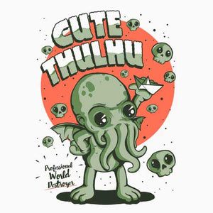 Nul ne résiste à Cthulhu, en particulier lorsqu’il est si mignon ! Aux antipodes de son image terrifiante et fantasmagorique, la créature culte de H.P. Lovecraft prend sur ce tee-shirt des allures de mascotte mimi, à qui on aimerait faire un câlin en rentrant des cours ou du boulot. Le saisissant contraste se retrouve d’ailleurs jusqu’au discret message Professional World Destroyer, qui ne manquera pas de donner une touche supplémentaire de charme et d’humour à cet adorable modèle. Un t-shirt à porter sans modération pour tous les amoureux de Cthulhu !