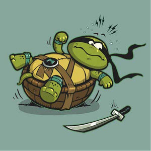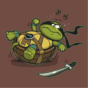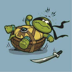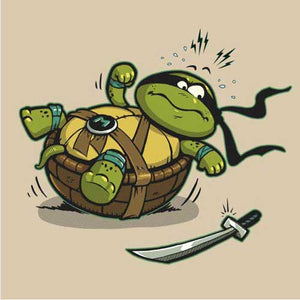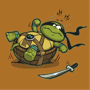 Imaginez que les redoutables Tortues Ninja, maîtres dans l’art du ninjutsu, et plutôt baraquées dans leur genre, redeviennent les inoffensifs petits reptiles qu’elles étaient avant de muter ! C’est visiblement ce qui est arrivé au pauvre Leonardo, tombé dans le pire piège possible pour une tortue: se retourner sur le dos ! Shredder peut dormir sur ses deux oreilles… Un adorable tee-shirt pour les fans de la bande à Splinter !