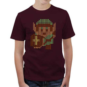 Les innombrables fans de Zelda n’ont sans doute pas tous assisté à la naissance de la saga ! Et pour cause, celle-ci est apparue en 1986 sur NES, à l’époque de la rivalité Nintendo SEGA, et de la bonne vieille 2D… Ça ne nous rajeunit pas ! Véritable révolution à l’époque de par son monde ouvert et ses donjons machiavéliques, The Legend of Zelda allait écrire l’une des plus belles pages de l’histoire du jeu vidéo. Checkpoint lui rend donc hommage avec ce sublime tee-shirt au doux parfum de rétro gaming, représentant avec beaucoup d’originalité le sprite de Link. Irrésistible !