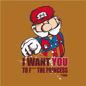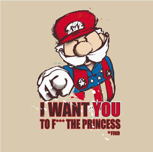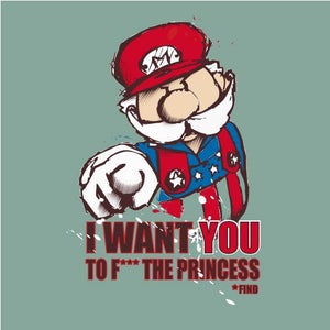 Parmi les nombreux modèles de notre collection de t-shirts jeux vidéo, Uncle Mario est sûrement l’un des plus drôles ! Le célèbre plombier de Nintendo, métamorphosé ici en l’Oncle Sam, vous confie une mission essentielle, soldat: aller trouver la princesse ! Oui oui, il est bien écrit FIND tout en bas, mais votre esprit mal placé avait naturellement compris autre chose, n’est-ce pas ? Un tee-shirt gamer parodiant avec un humour un tantinet coquin la célèbre affiche de recrutement de l’armée américaine. C’est compris, Uncle Mario, pour sauver la patrie on file s’occuper de la princesse !