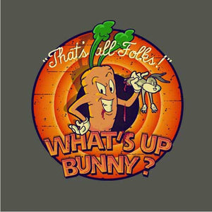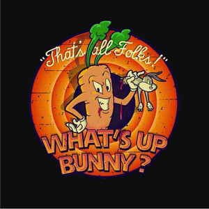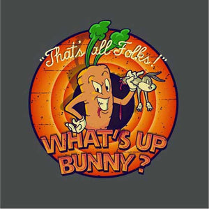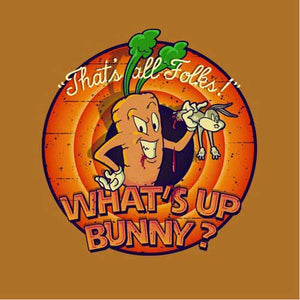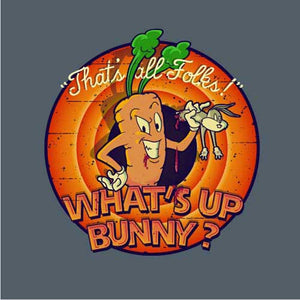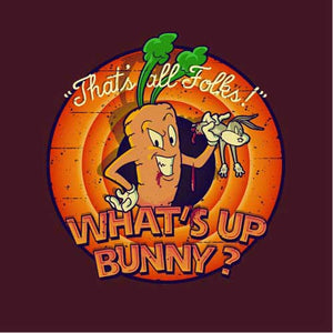 Si, comme nous, vous avez adoré l’époque Looney Tunes, ce tee-shirt est fait pour vous ! Les dessins animés du dimanche dans Ça cartoon ont bercé l’enfance de millions de téléspectateurs. Il arrivait souvent que dans ceux dédiés au facétieux Bugs Bunny, ce dernier conclut l’épisode en mangeant une carotte, avec le fameux That’s all folks. Mais cette fois, on inverse les rôles !