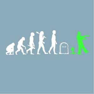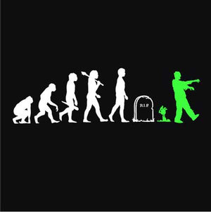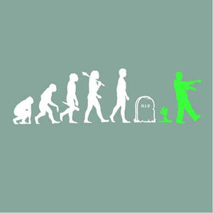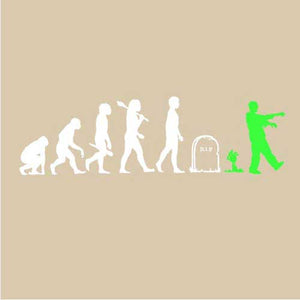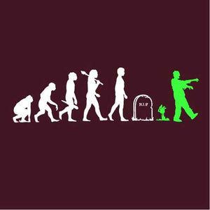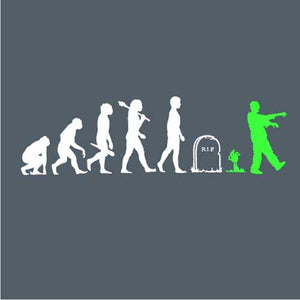 Vous aimez les t-shirt zombies ? Nous aussi ! L’évolution de l’homme, du singe jusqu’à l’actuel homo sapiens, était jusqu’ici connue. Or, elle était malheureusement incomplète... Checkpoint rectifie donc ce malencontreux oubli, en y ajoutant l’étape ultime: celle du zombie ! Car une fois les deux pieds dans la tombe, une nouvelle vie commence dans la joie et la bonne humeur, faite de grognements en série, de balades entre potes, et de festins de cerveaux humains.